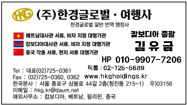 한경글로벌 김유금 이사님을 통해서 결혼서류를 진행하신 분이결혼 절차를 잘 밟고 차후에 신부와 관련된 서류를 준비하기 위하여 캄보디아 출생증명서 및 범죄경력조회서, 호구부(가족증명서) 등을